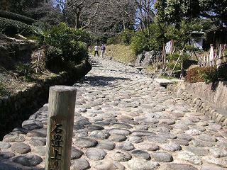 ひと山越えた辺りで「旧東海道石畳」の 文字を発見。