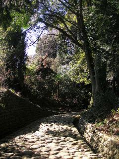 R473を右折してほどなく「旧東海道石畳」の入口に到着。舗装路を100mほど登ると駐車場があり、にわかに石畳が始まりました。