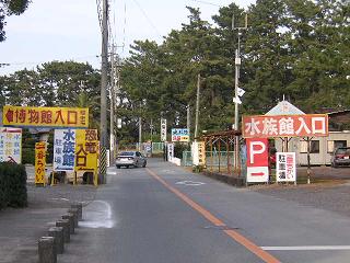 お土産屋さんの並ぶ 駐車場に自転車をとめ、 砂浜へは歩いて向かいます。