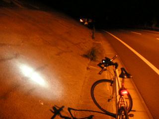 ルートは途中から広域農道に入り、墨を流したような闇の中を一人とぼとぼ登ってゆきます・・・。