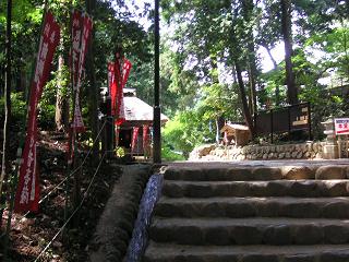 適当にお賽銭を投げ込みながら奥へと向うと「⇒山頂から富士山が」という板書きが目にとまってそのまま坂道を(もちろん徒歩で)上りました。