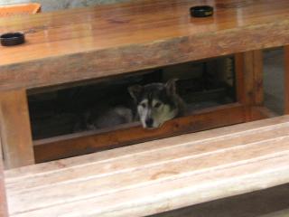 とりあえずアイスもなかを買ってまったりしていたら、テーブルの下からワンコがこちらを覗いていたりも。気がついたら動物王国状態に(笑