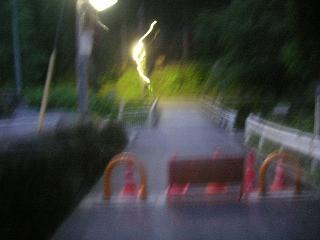 ふもとの林道入口に着いた時点で時刻はもう夜の7時20分。さすがにすっかり夜もふけてしまった頃合なのですが、もうあとは庭先ですし。