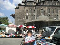 モスクの前は服飾品の露天市だったりします。 暑いのに賑やいでおりました。 |