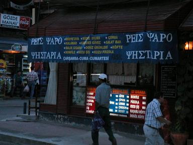 ギリシャとの国境が近いせいか、街中には ちらほらとギリシャ語表記が見られます。